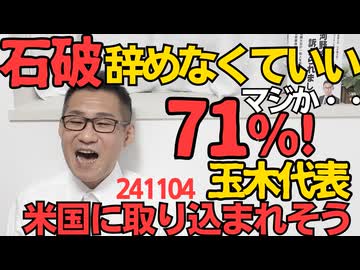 TBS「石破は辞めなくていい=71%!」自民党を痛めつけたい野党支持者が「辞めないで」無関心層が「(どうでも)いいんじゃね」と答えたから/玉木代表、アメリカに取り込まれそう 241104