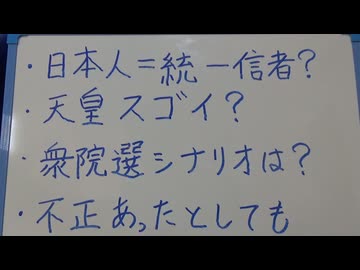 ・日本人=統一信者?・天皇スゴイ?・衆院選のシナリオ?・不正あったとしても…など。