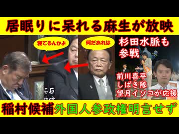 【居眠りに呆れる麻生太郎】マンガのような姿が放映されてしまう【兵庫県知事選挙】稲村候補が外国人参政権を否定せず「前川喜平」「望月イソコ」も何故か参戦