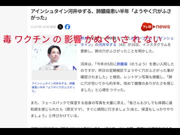 毒ワクチンの影響が拭い去されない アインシュタイン河井ゆずる、肺膿瘍患い半年「ようやく穴がふさがった」