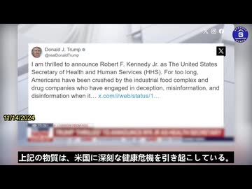 ロバート・F・ケネディ・ジュニア氏を厚生長官任命と正式発表。また、食品産業と製薬企業は長い間、公衆衛生に関して米国民を欺き、惑わし、また搾り取ってきたと表明