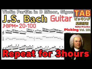 [Repeat]J.S. Bach - Violin Partita in D Minor Gigue BWV1004 バッハ パルティータ第2番 より《ジーグ》 ギターピッキング基礎練習