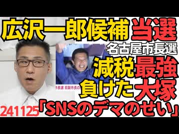 名古屋市長選、広沢一郎候補当選、自民公明立憲国民4党相乗りの大塚候補敗北でひしひしと感じる従来政党とマスゴミの衰え/負けた大塚候補「SNSの嘘とデマのせい」便利な言い訳が流行ってる241125