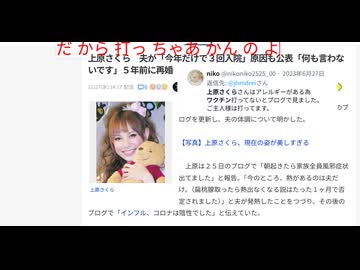 だから打っちゃあかんのよ 上原さくら 夫が「今年だけで3回入院」原因も公表「何も言わないです」5年前に再婚