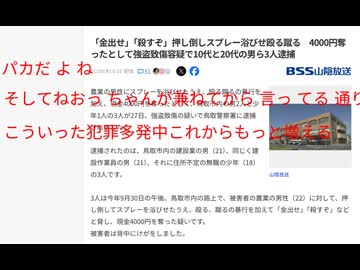 パカだよね そしてねおっちゃんが兼ねてから言ってる通りこういった犯罪多発中これから もっと増える 「金出せ」「殺すぞ」押し倒しスプレー浴びせ殴る蹴る 強盗致傷容疑で10代と20代の男ら3人逮捕