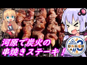 【野外料理祭3】炭火でシュラスコ風串焼きステーキ【ラ族番外編】