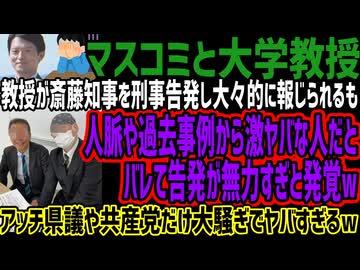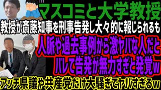【マスコミと大学教授】教授が斎藤知事を刑事告発し大々的に報じられるも人脈や過去事例から激ヤバな人だとバレて告発が無力すぎと発覚wアッチ県議や共産党だけ大騒ぎでヤバすぎるw