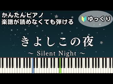 【きよしこの夜】~Silent Night~ 楽譜が読めなくても弾ける 簡単ピアノ 初心者向け 初級 ゆっくり練習用『クリスマスソング』"Christmas Song" easy piano
