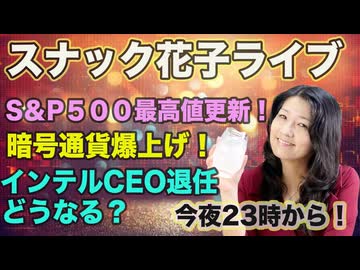 スナック花子ライブ(2024年12月6日収録分)S&P500最高値更新!暗号通貨爆上げ!インテルCEO退任どうなる?今夜も話題盛りだくさん!米国株大好きっ子、集まれ〜!!!