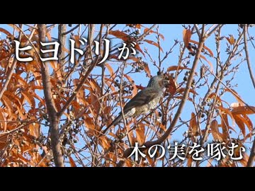 ヒヨドリが木の実を啄む