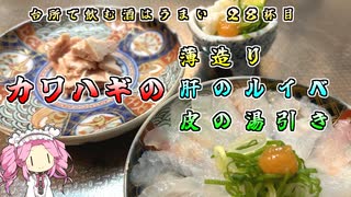 台所で飲む酒はうまい 28杯目 カワハギの薄造り・肝のルイベ・薄皮の湯引き