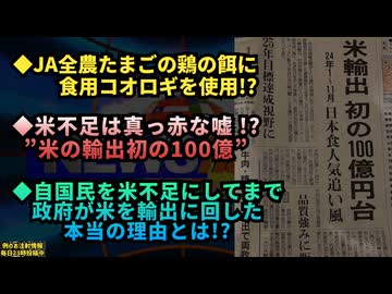 ◆JA全農たまごの鶏の餌に食用コオロギを使用!?◆日本の米不足は真っ赤な嘘 だった!?驚愕の輸出裏事情◆国民は重税に苦しんでいるのに、ワクチン打たせるためには医療機関に接種費用を大盤振る舞い