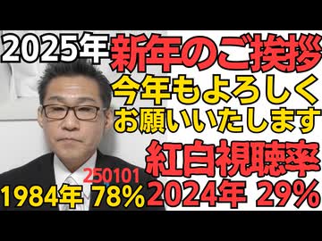 新年のご挨拶 本年もよろしくお願いいたします/NHK紅白視聴率 1984年78.0% 2024年28.9%/巳年生まれ72歳145万人、12歳103万人、今年生まれは65万人(推定) 250101