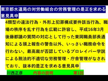 東京都水道局の対労働組合の労務管理の是正を求める意見具申 シリーズ1 川西正彦