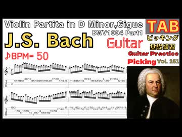 [TAB]Violin Partita in D Minor, Gigue BWV1004 Part1 J.S. Bach バッハ 無伴奏ヴァイオリン・パルティータ第2番