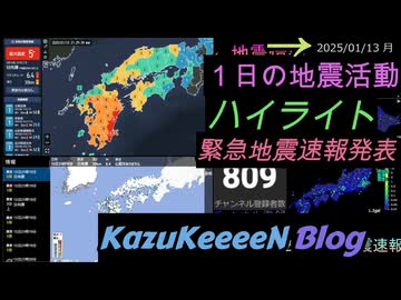 2025年01月13日 月曜日 地震活動ハイライト 緊急地震速報・津波注意報