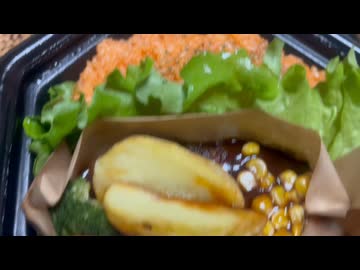 ハンバーグとケチャップライス #ハンバーグ #コーン #ポテト #ニンジン #ブロッコリー #レタス