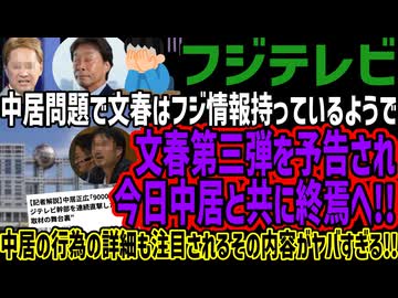 【フジテレビ】中居問題で文春はフジ情報持っているようで文春第三弾を予告され今日中居と共に終焉へ!!中居の行為の詳細も注目されるその内容がヤバすぎる!!