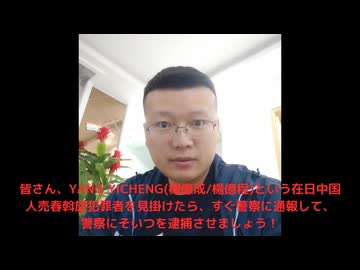 在日中国人売春斡旋犯罪者 YANG YICHENG(楊億成/楊億程) 1997年5月13日に生まれ