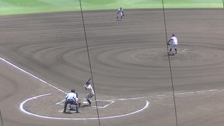 西日本短大付 斉藤 大将くんがセンターへのヒットで出塁 無死一塁(2024年8月9日 甲子園1回戦 金足農業 対 西日本短大付)