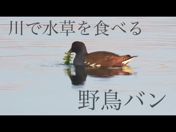 川で水草を食べる野鳥バン