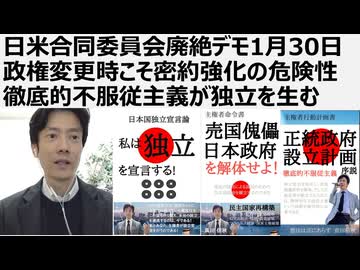日米合同委員会廃絶デモ1月30日 政権変更時こそ密約強化の危険性 徹底的不服従主義が日本独立を生む 日米合同委員会は無効