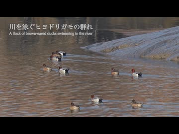 川を泳ぐヒヨドリガモの群れ