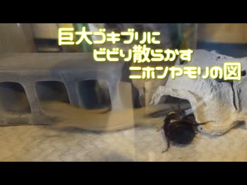 【ヤモリ動画】巨大ゴキブリにビビり散らかすニホンヤモリの図
