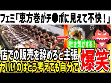 【悲報】ツイフェミさん「恵方巻がチ●ポに見えて吐きそう...」➡頭の中がピンクすぎると話題になってしまう...