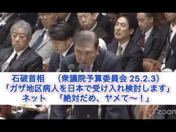 石破茂首相「ガザ地区病人を日本で受け入れ検討します」ネット「絶対だめ、ヤメて〜!」(衆議院予算委員会 25.2.3)