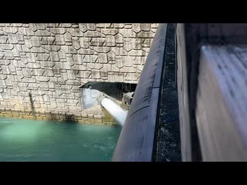 石小屋ダムの利水放流設備(バルブ)からの放流