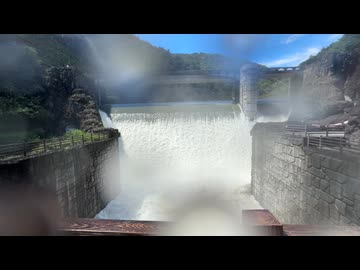 台風通過後の石小屋ダムの下に立ってみた。