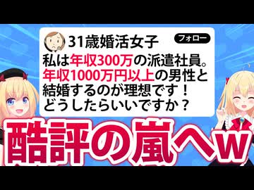 31歳婚活女子「私は年収300万円の派遣社員だけど年収1000万円以上の男と結婚したいです!」→ネットで酷評へwww