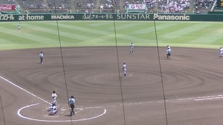 三盗狙う古賀 海凪くんを刺す金足農業 相馬 英典くん(2024年8月9日 甲子園1回戦 金足農業 対 西日本短大付)