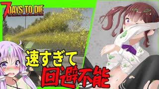 【7daystodie CUYD】理不尽!高速3ウェイゲロ攻撃・・!もはや回避不能な汚染警官ゾンビの攻撃に先輩も横転!衝撃ドライバー編【ボイスロイド実況】