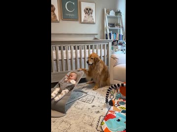 ホモと見る子守する犬