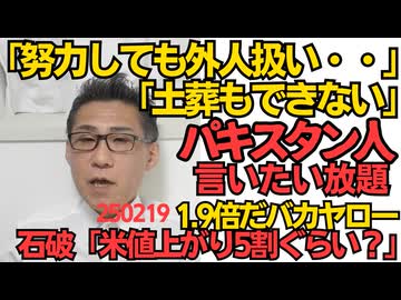 パキスタン人言いたい放題「土葬できないし投票できないし努力しても外人扱い」日本に居てくれって頼んでないが/石破総理「米の値上がり5割ぐらい?」9割増の1.9倍だバカヤロー 250219