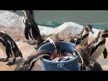 【東武動物公園】フンボルトペンギンのバケツ飯【スローモーション】
