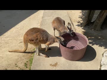 【東武動物公園】アカカンガルーたちの水分補給タイム【アカカンガルー】