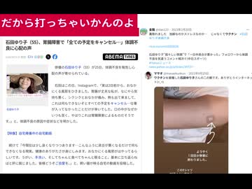 だから打っちゃいかんのよ 石田ゆり子(55)、胃腸障害で「全ての予定をキャンセル…」体調不良に心配の声 イベルメクチン服用しか解決策なし 伝えてあげて