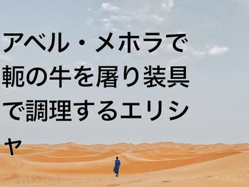 アベル・メホラで軛の牛を屠り装具で調理するエリシャ