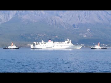 ある日の桜島(その418)<タグボートに曳航されてドックへ向かう「フェリー屋久島2」に出くわした>