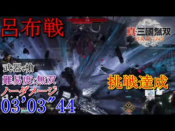 【真・三國無双ORIGINS】呂布戦(下邳の戦い) 槍 難易度:無双 ノーダメージ 挑戦達成 03'03"44