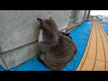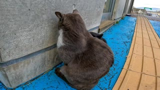 壁に向かってふてくされる野良猫がカワイイ