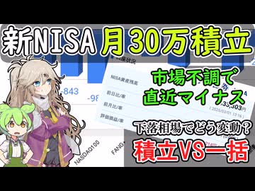 市場は不調 資産はいくらマイナスに? 積立VS一括投資 新NISA月30万積立推移【ずんだもん解説】