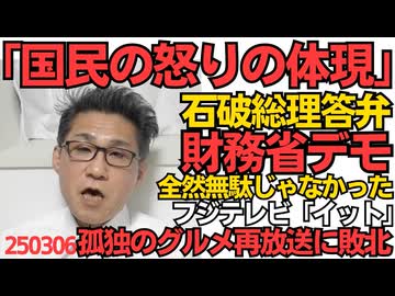 石破総理「財務省デモは国民の怒りの体現」国会答弁 誰だよ効果無いとか無駄だって言ってる奴は/フジテレビ「イット」テレ東「孤独のグルメ」再放送に視聴率で負けてしまうw250306