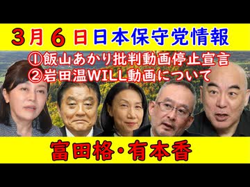 【3月6日】日本保守党情報「富田格・有本香」①飯山あかり動画停止宣言②岩田温WILL動画に言及