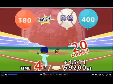 ねらえ!パーフェクトバッティングで規定スコア(56000pt)を超えた動画