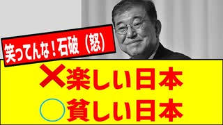 石破「楽しい日本(笑)」国民「貧しい日本」