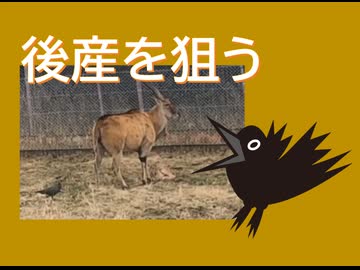 エランド(ウシ)の後産を狙うカラス【アフリカンサファリ】